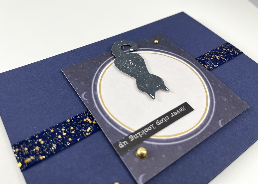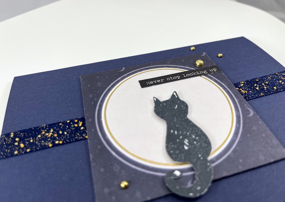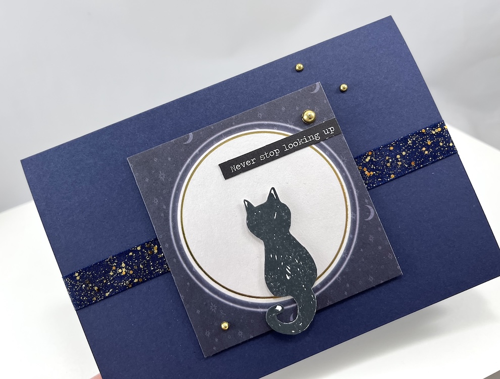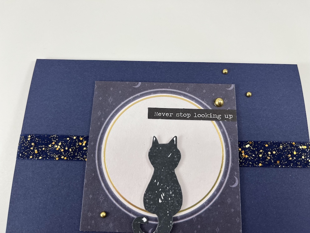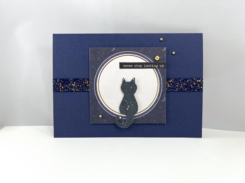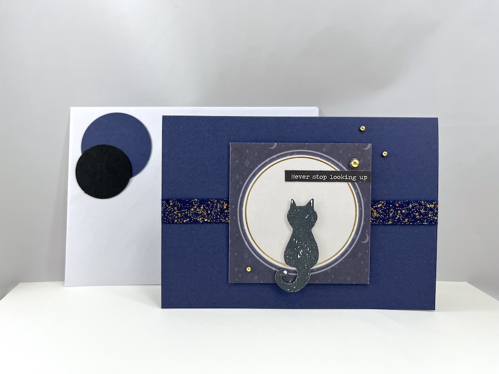 Diese wunderschöne Klappkarte zur Motivation mit Katze mit Mond-Motiv wurde von mir mit Liebe handgefertigt.