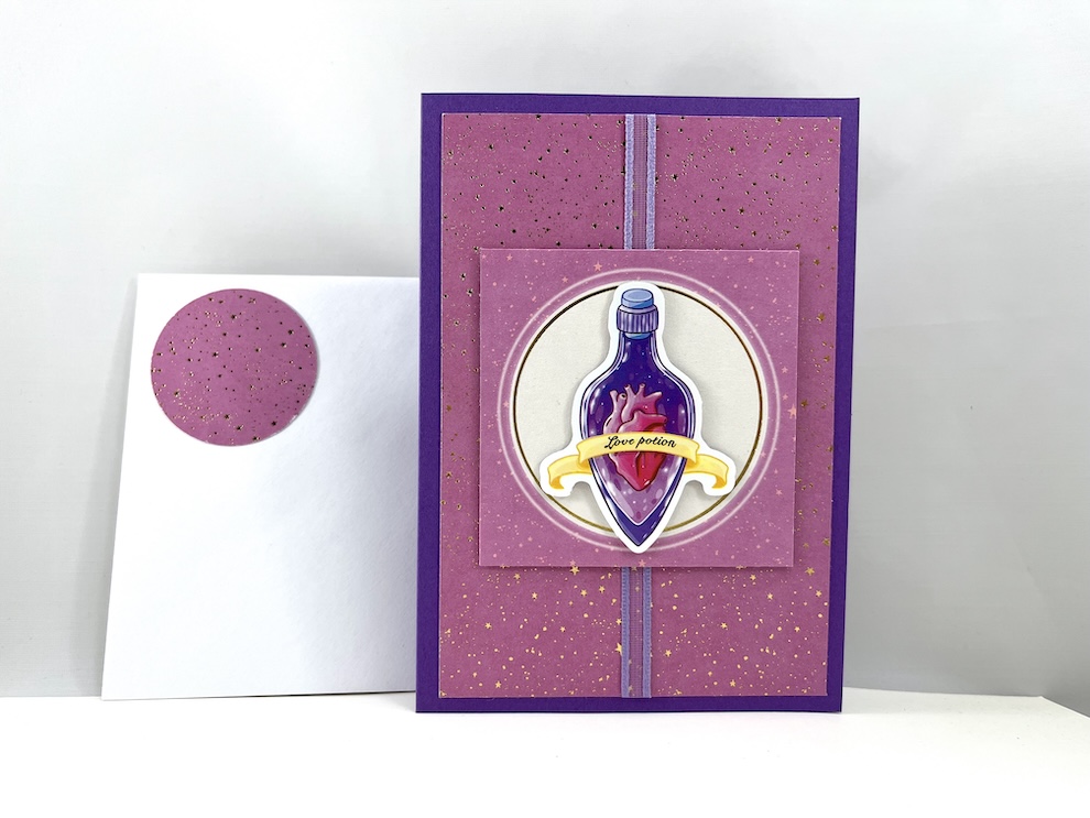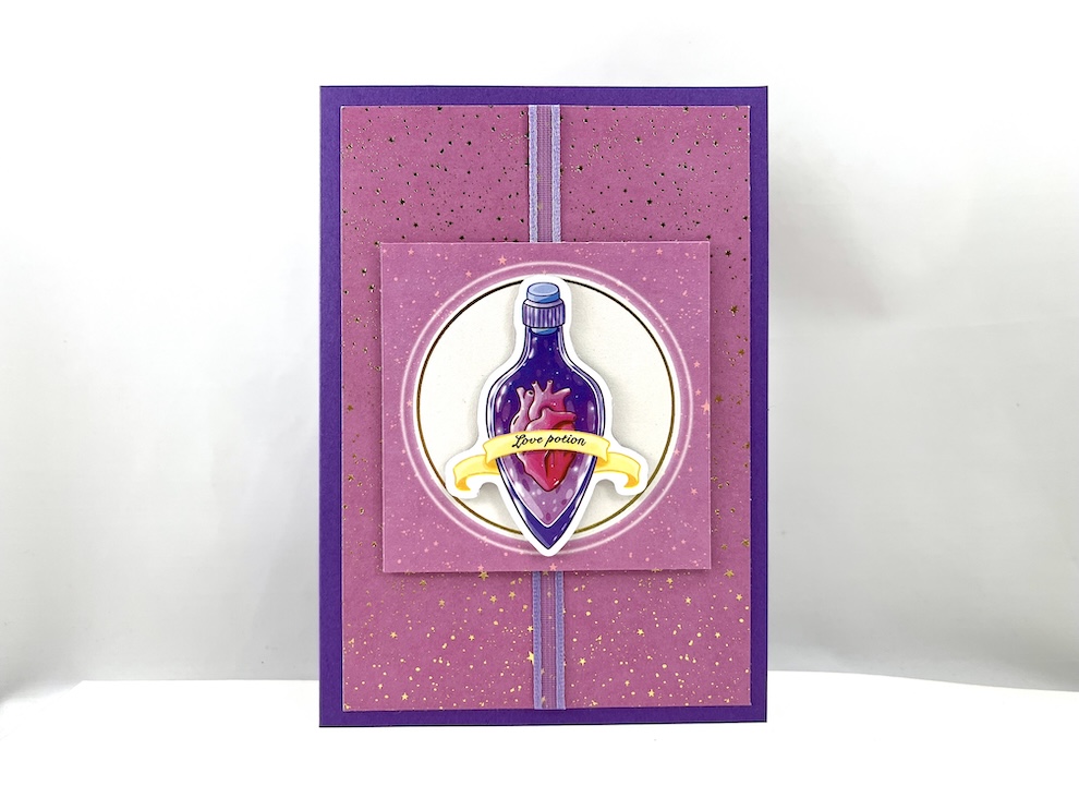 Diese wunderschöne Klappkarte mit Liebestrank-Motiv wurde von mir mit Liebe handgefertigt.
